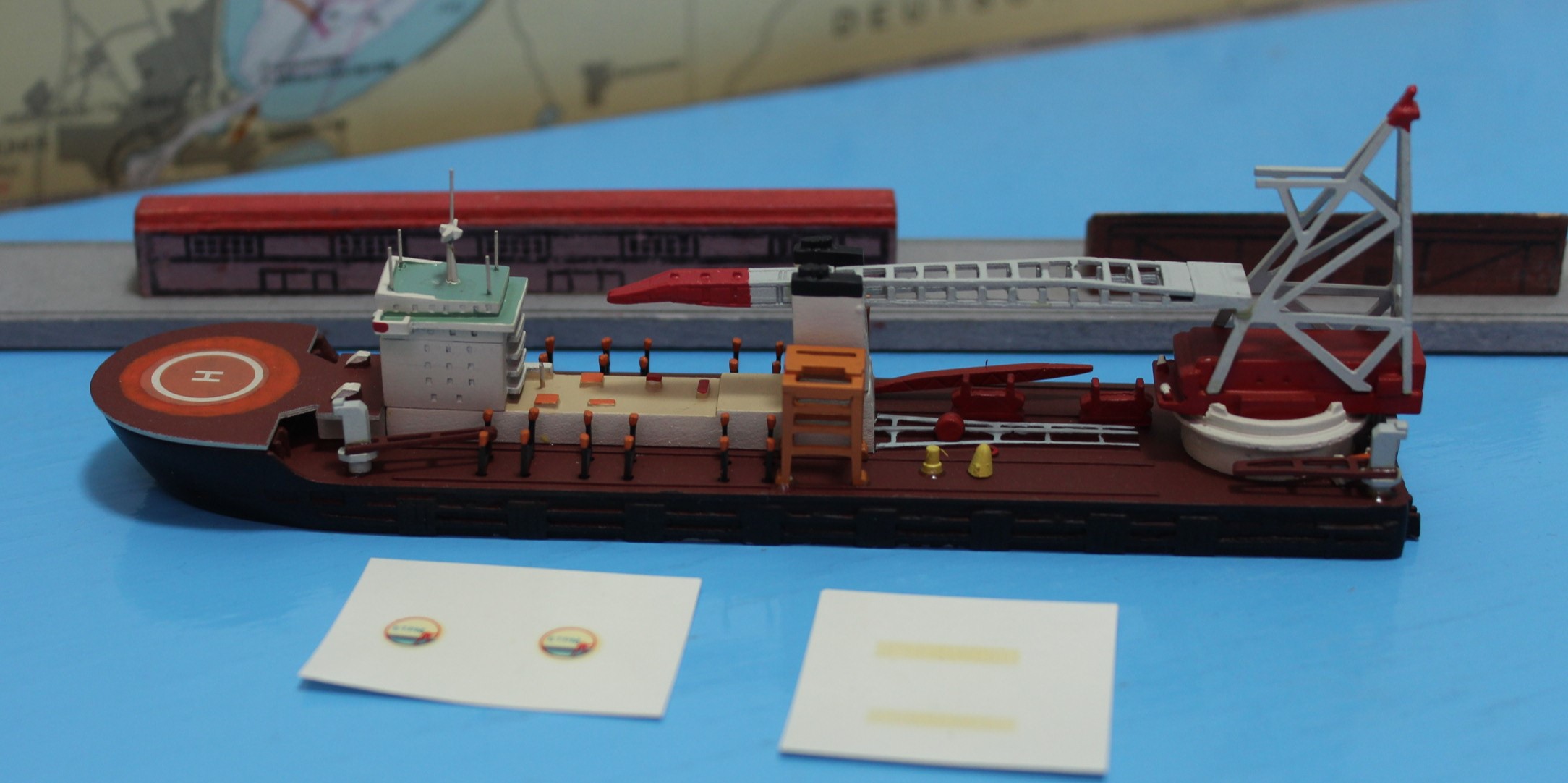 Zum Schiff: Spezialschiff zur Verlegung von Rohrleitungen, gebaut bei Blohm + Vosss, Hamburg