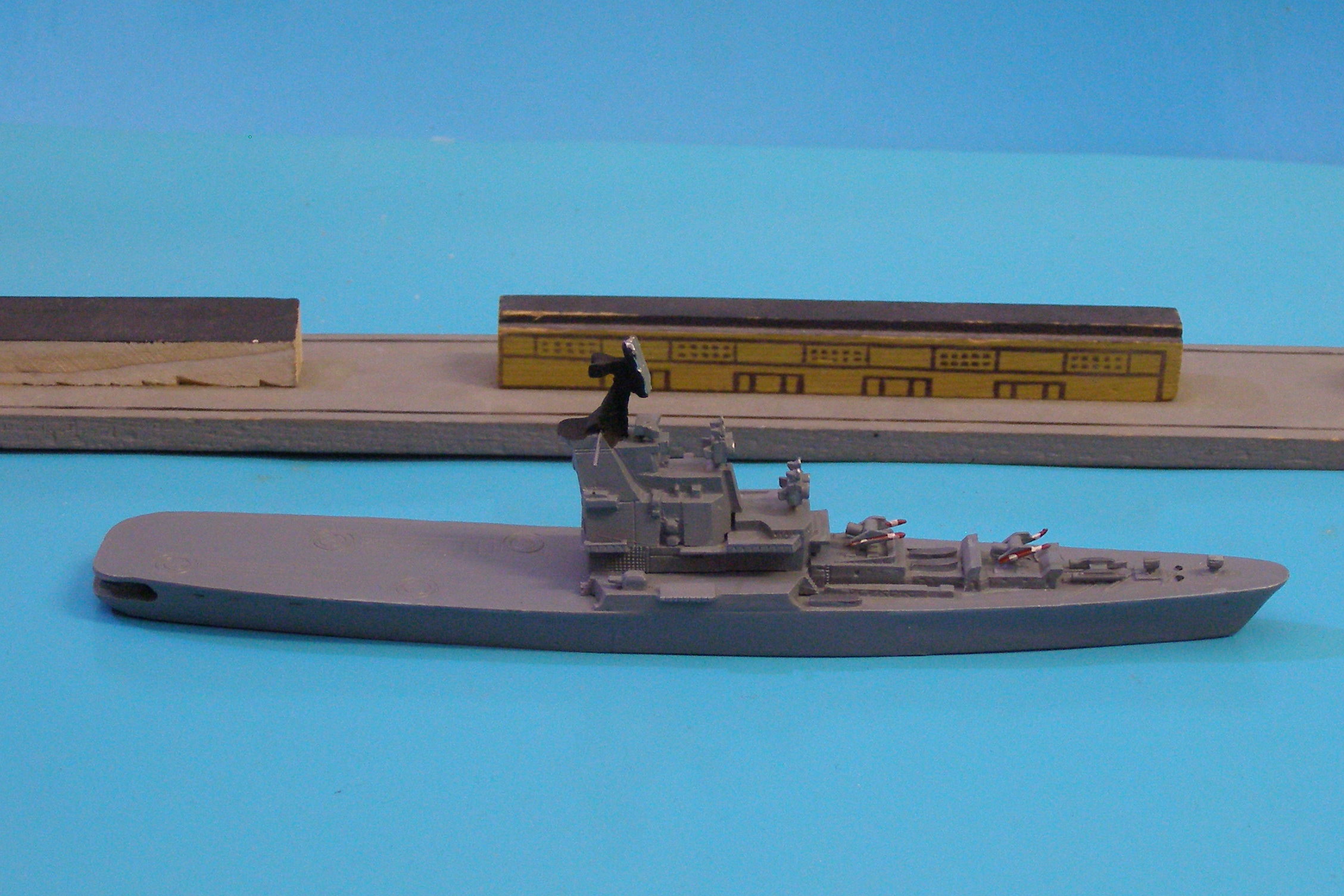 Schiffsmodell im Maßstab 1:1250 aus Metall.