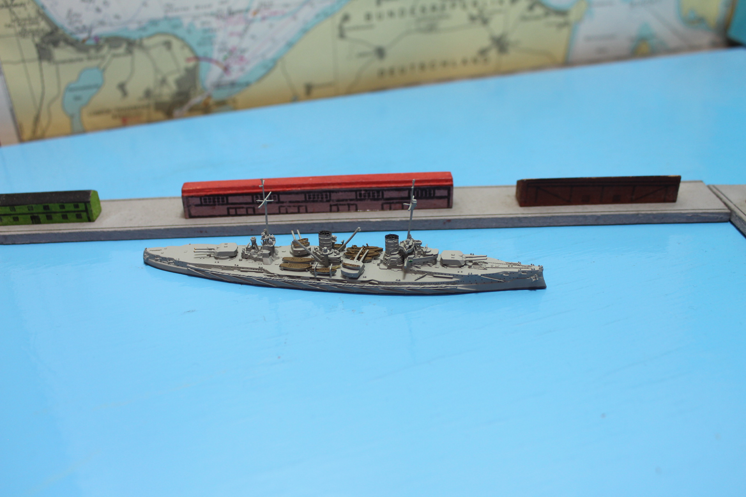 Schiffsmodell im Maßstab 1:1250 aus Metall.
