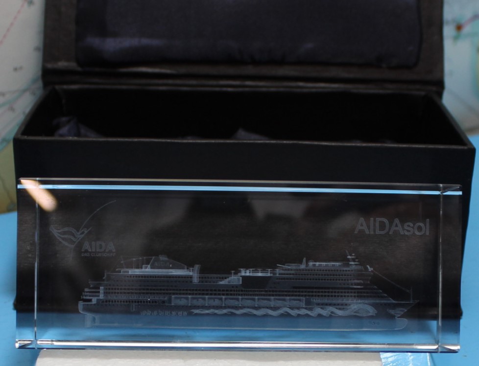 AIDAsol Kreuzfahrtschiff als 3 D Laser Glasblock (1 St.)