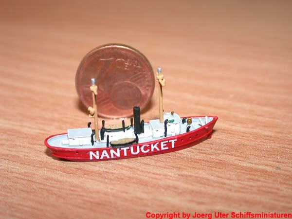 Feuerschiff mit rotem Rumpf, Vorbild wurde von Olympic (Schwesterschiff von TITANIC) im Nebel gerammt und versenkt.