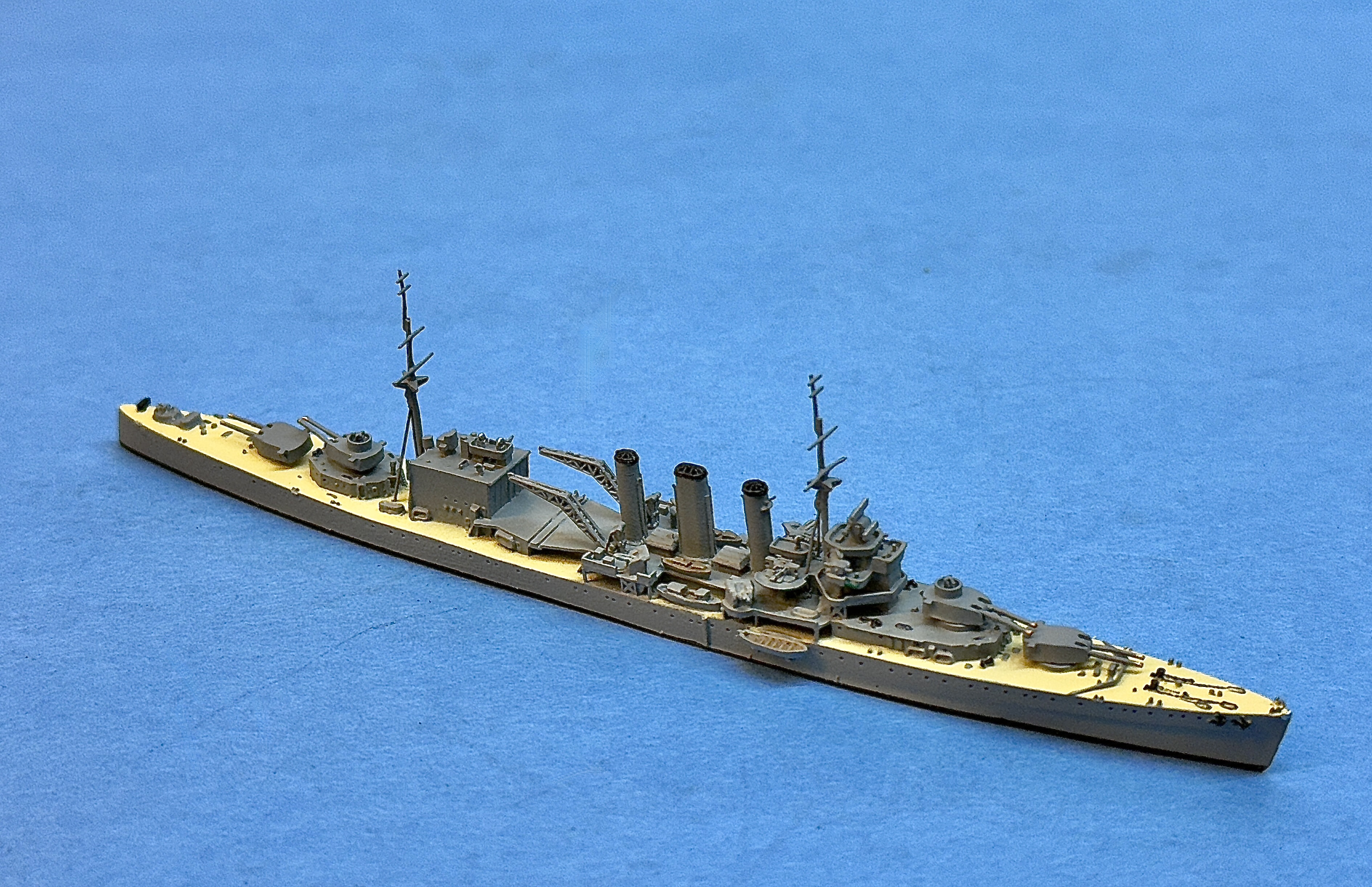 Schiffsminiatur aus Metall im Maßstab 1:1250.