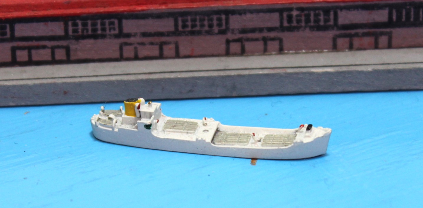 Schiffsminiatur aus Metall im Maßstab 1:1250.