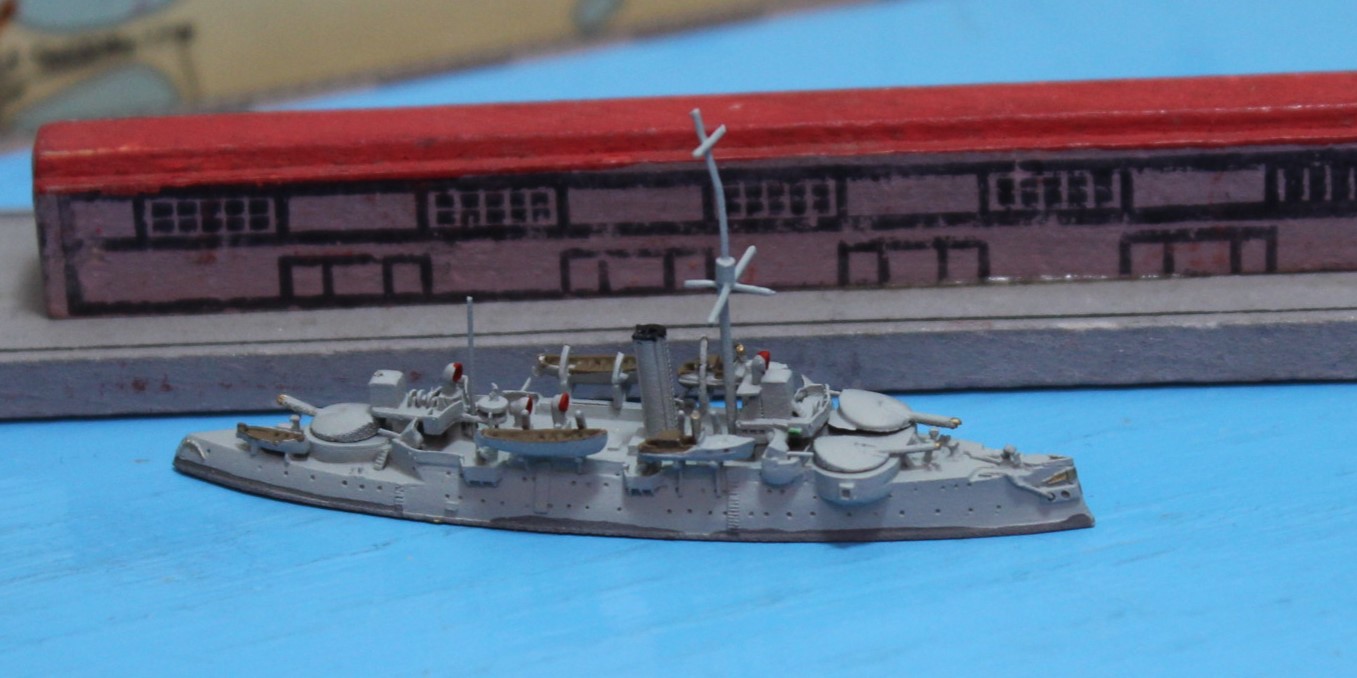 Schiffsmodell im Maßstab 1:1250 aus Metall.