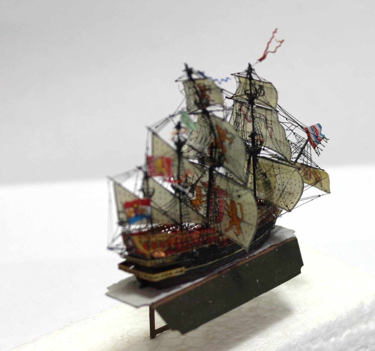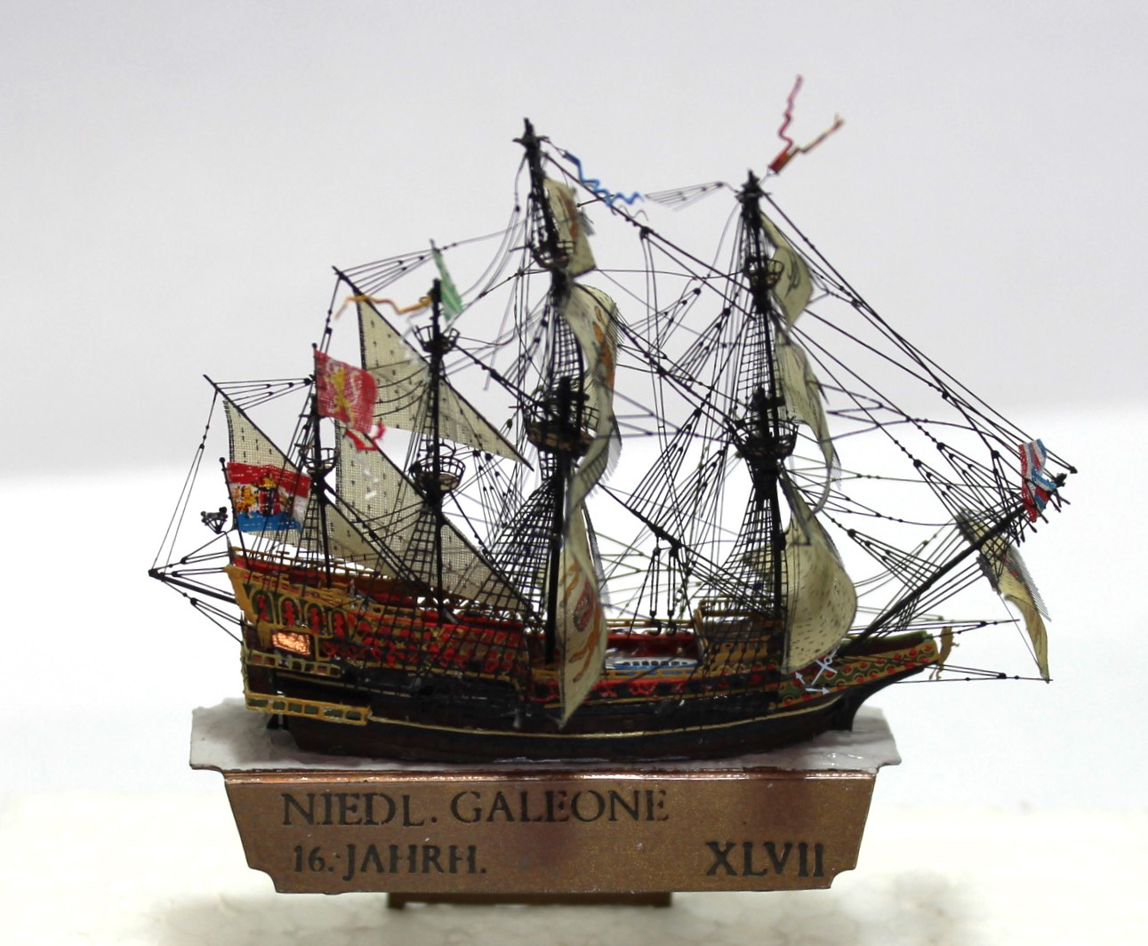 Schiffsmodell aus Metall und anderen Materialien in 1:1250.