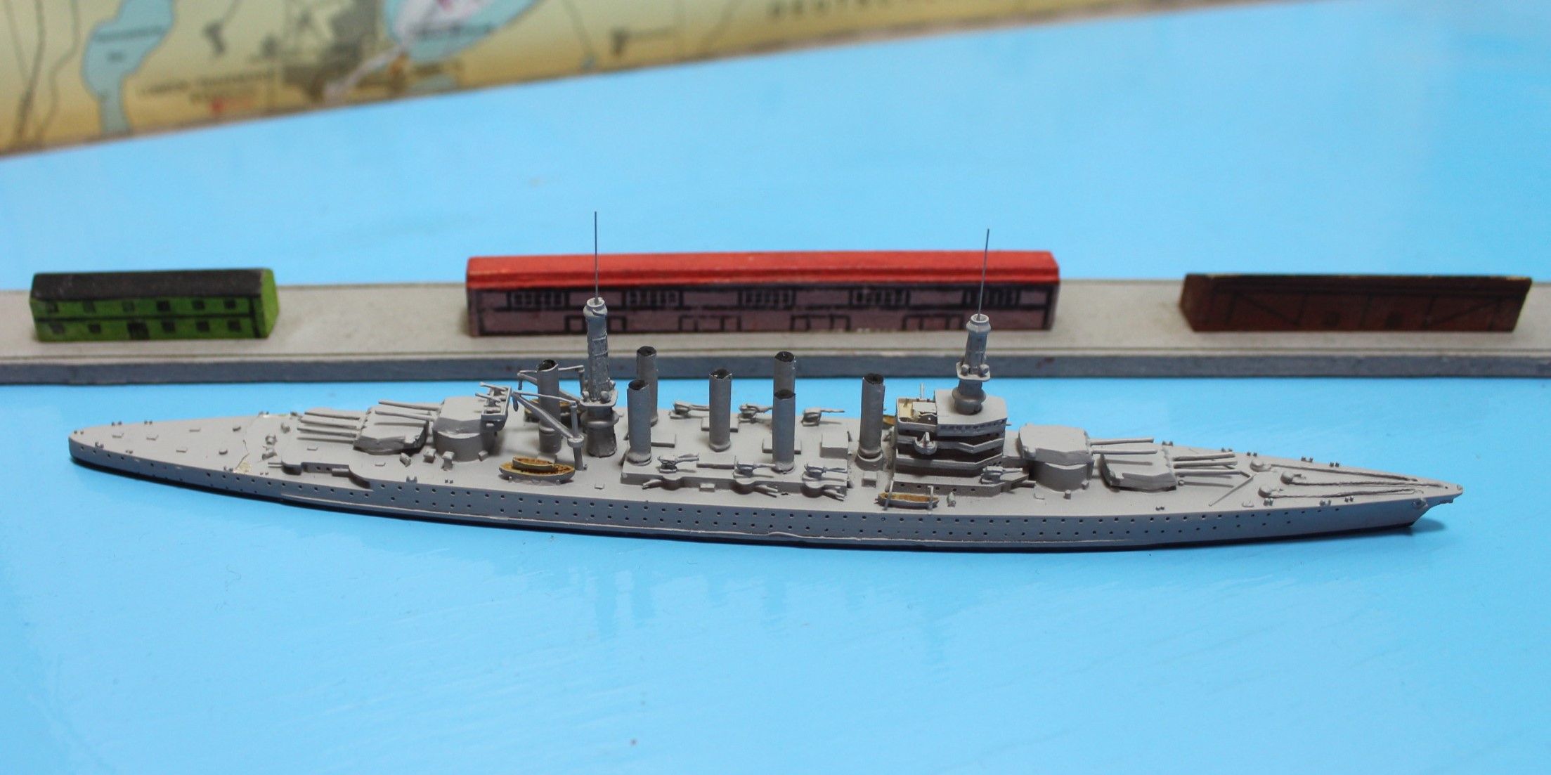 Schiffsminiatur aus Metall in 1:1250.