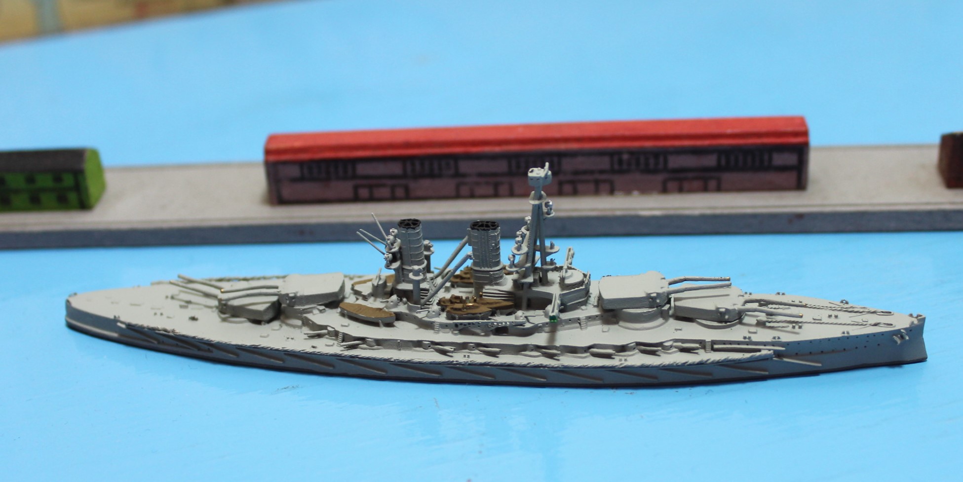 Schiffsmodell im Maßstab 1:1250 aus Metall.