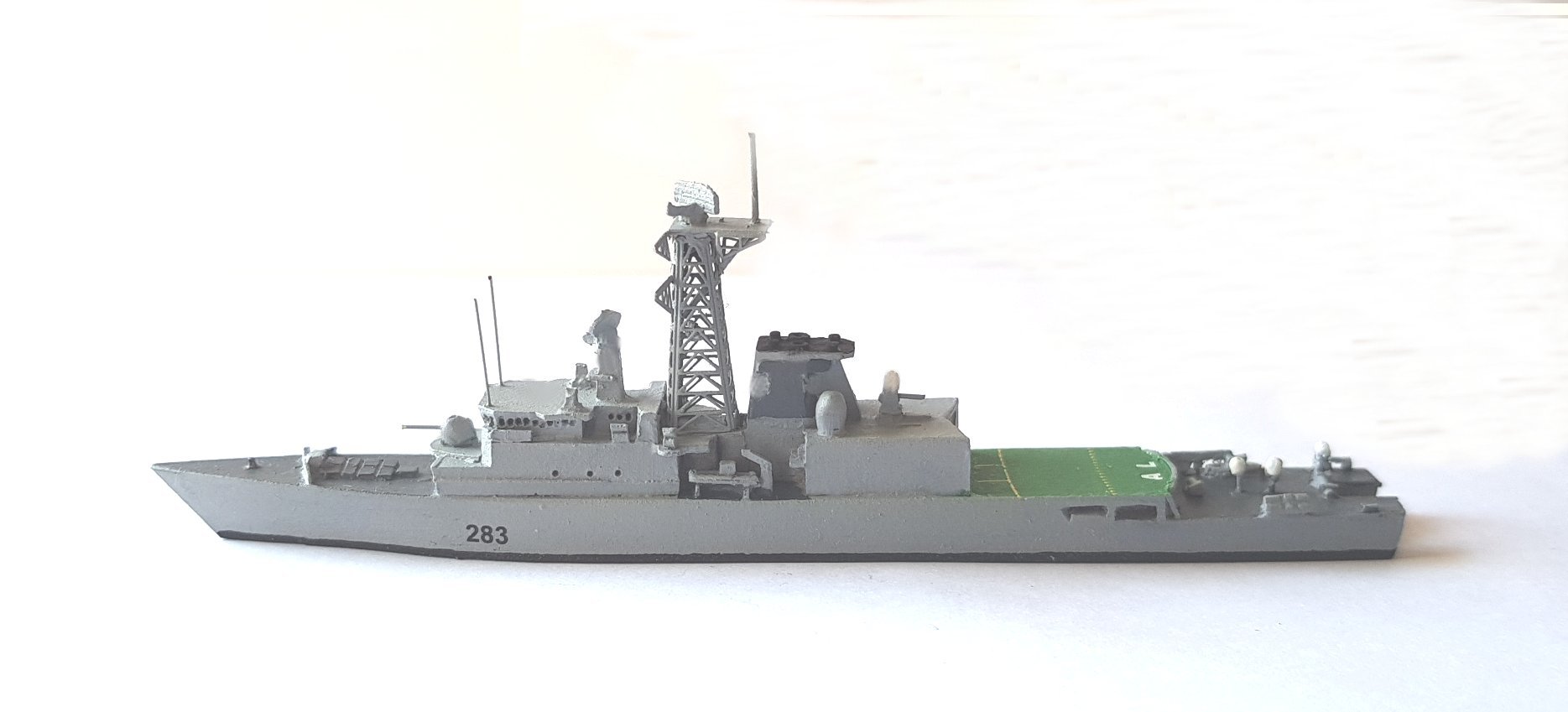 Schiffsminiatur aus Metall in 1:1250.